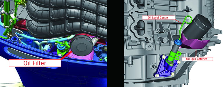 Oil Spill Catcher: A tray is added around the oil filter to catch oil which comes out when exchanging the oil filter
