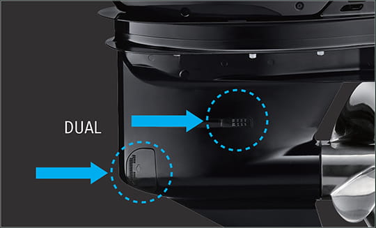 The Dual Prop system efficiently turns engine's output into propulsion under water.